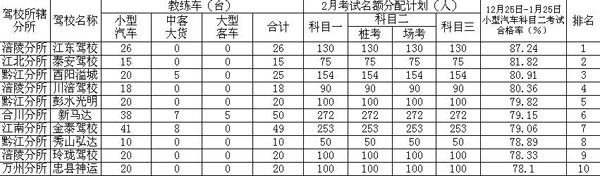 重庆市市机动车驾驶人考试科目二考试合格率前十名