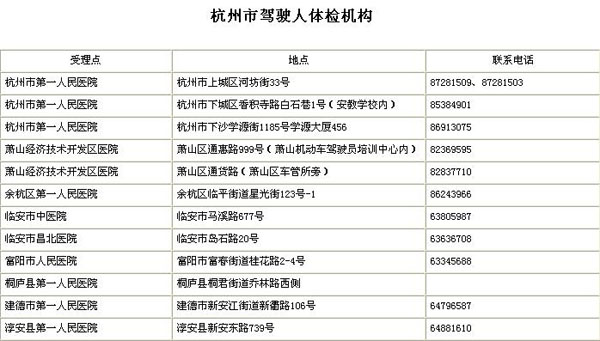 杭州考驾照 杭州市驾驶人体检机构