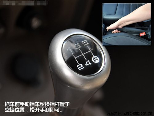 拖手动挡车:手动挡车型没有限制,只要保证变速杆位于空挡位置,松开手刹就可以了。但是时速也不用过快。